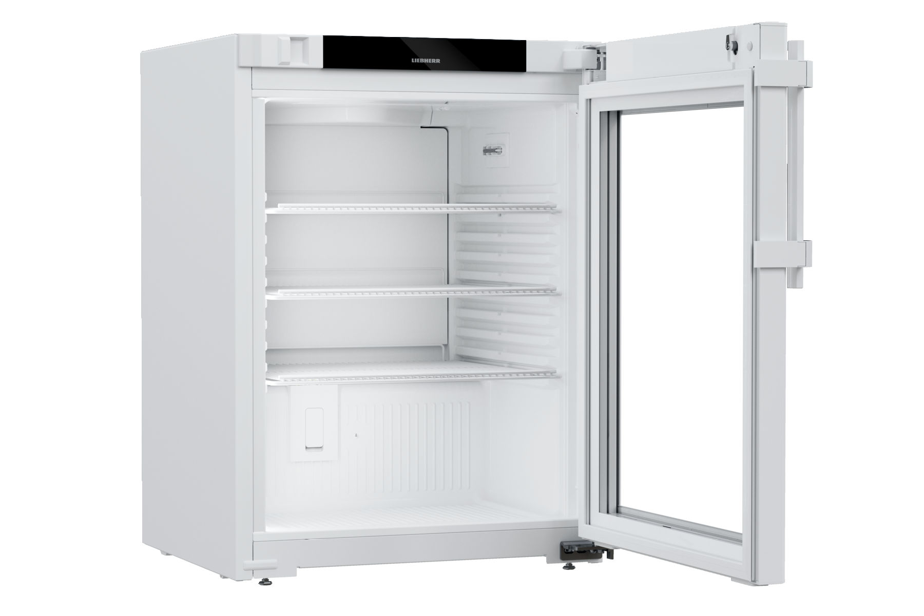 Product specifications Downloads / Tutorials Print PDF Show all Hide all Dimensions, volume and weight Net volume 82 l Gross volume 137 l External dimensions (WxDxH) 597 x 605 x 819 mm Internal dimensions (WxDxH) 450 x 460 x 620 mm Package dimensions (WxDxH) 615 x 710 x 890 mm Gross Weight 42 kg Net weight 37 kg Performance and consumption Cooling temperature interval 5 to 5 °C Energy consumption (kWh/year) 187 kWh/year Energy consumption (kWh/day) 0.51 kWh/day Noise level 44 dB(A) Execution Ventilated / Static Technical cooling specifications Defrosting Automatic Defrosting, type Hot-gas Refrigerant R600a Connection Voltage 230 V Design and materials Door Hinged glass door Doorframe Rustfrit stål Reversible door Yes Exterior White Handels Yes Interior ABS, white Material Metal Controller Electronic Vertical light, no. 1 pcs. Door, features Self-close Internal light Yes Equipment Number of shelfes 3 pcs. Shelf, type Wire shelf Lock Electronic Downloads Manuals Drawings