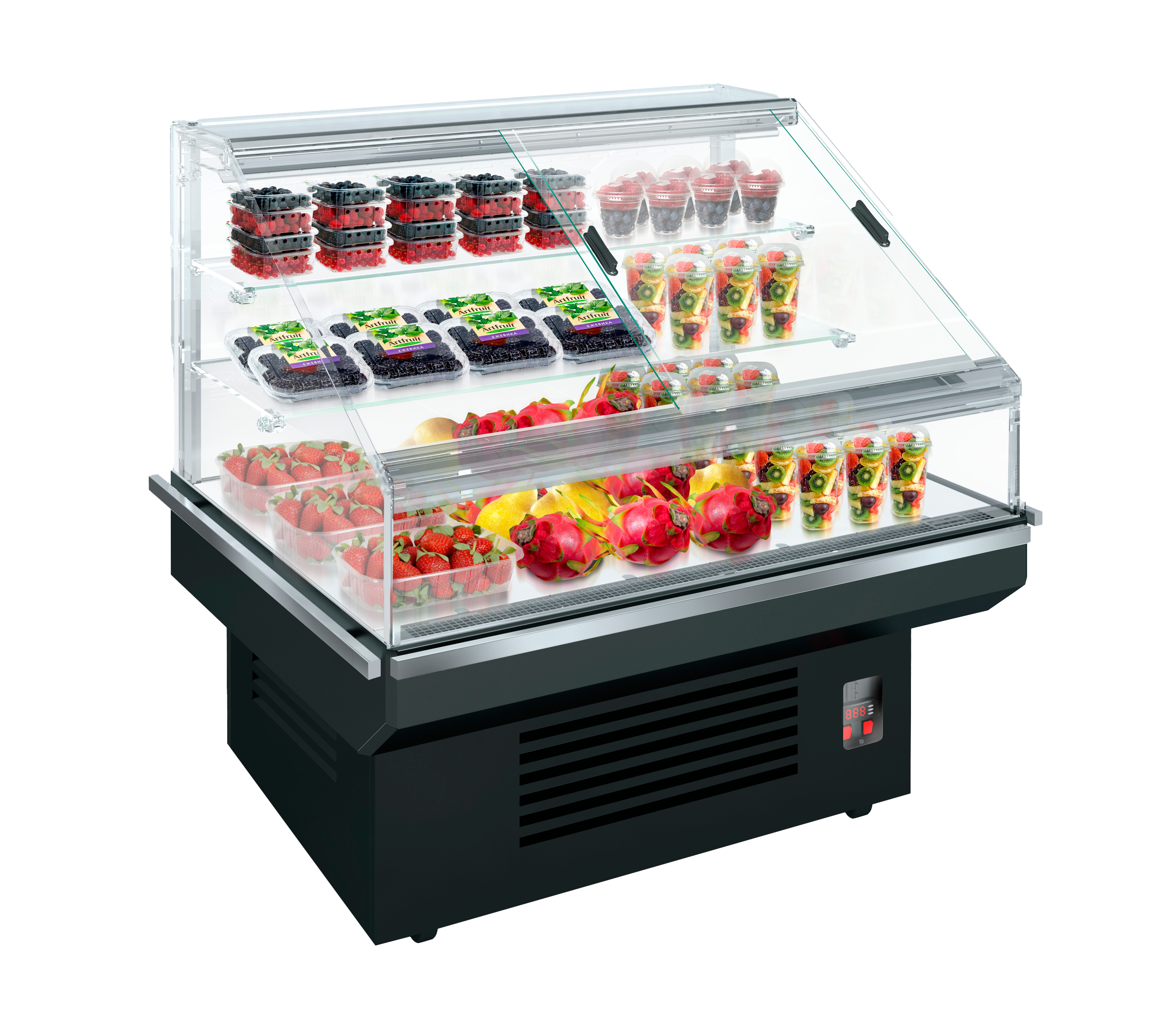 The black cabinet is equipped with stainless steel fender trims on the front and sides, as well as lockable wheels, enabling the unit to be easily moved and secured as required. With dimensions of 1280 x 1140 x 1340 mm, the cooler fits seamlessly into various retail environments, either as a stand-alone unit or back-to-back for a double display.